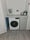 A modern, fully equipped kitchen featuring integrated appliances, including fridge/freezer, oven, hob, washing machine, and microwave.