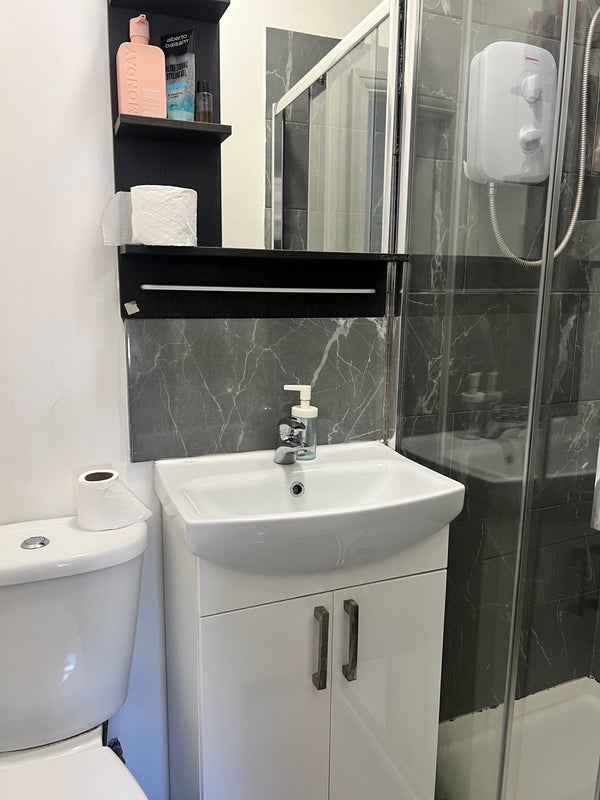 - **Room 1:** A double en-suite room with a separate living space, as seen in the photos.