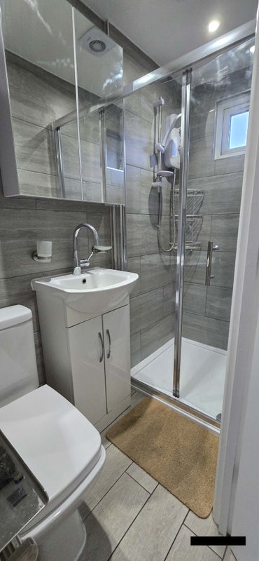 The bathroom is fully tiled with a good electric shower.