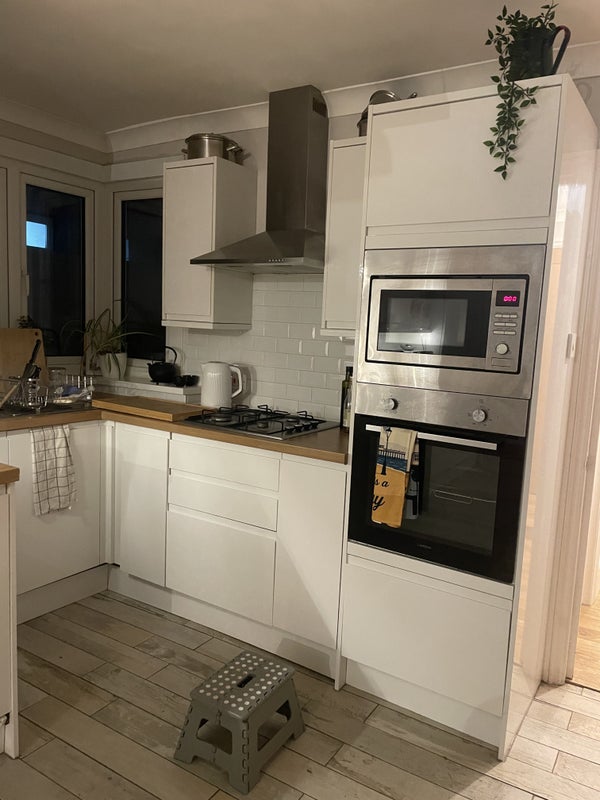 The flat is fully equipped and there is a bed and clothing rails in the available room already. Other furniture will need to be brought in if needed for the spare room. There is a large hallway cupboard. I already have set up all kitchen appliances and have a hoover, all that is missing is an ironing board.