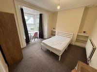 A large ground floor bedroom. Part of a shared house of 5 female students. Very close to the university. Located in the heart of Upper Bangor. Close to all shops.