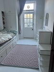 Bedroom has an Ikea Hemnes day bed which pulls out to a double bed, clothes rail and chest of drawers.