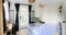 The flat is spacious, the main living area is open plan and has two large floor to ceiling windows which let in all of the morning light. It has a small balcony from which the sea can be seen. The walls are bare stripped plaster and the floors are timber, giving the place a very chic casual homely feel.