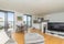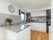 The contemporary fitted kitchen offers ample worktop and storage space, complemented by a double-aspect layout and an abundance of floor-to-ceiling glazing, creating a bright and airy feel throughout.