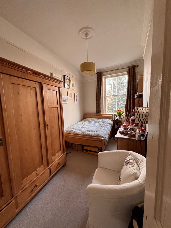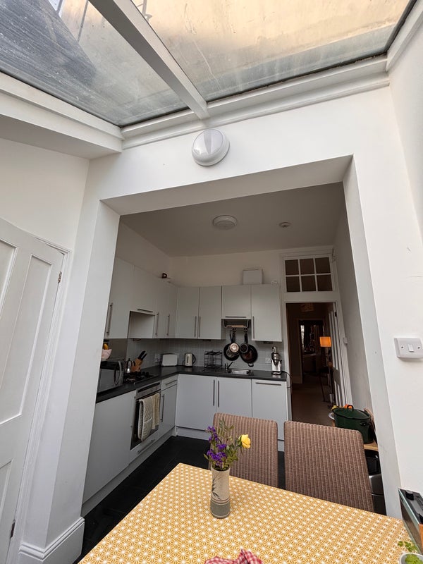 The flat is on the ground floor, in a grade 2 building. It’s very spacious and brightly lit. It is officially unfurnished but already has everything needed in communal areas - living room, bathroom and kitchen. Only the available bedroom will be empty. We have a small private yard which gets the sun most of the summer where I grow herbs and other vegetables in my little greenhouse. I also have a sun lounger! Smoking is strictly not allowed inside the flat and pets are sadly not allowed.
