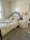 The bedroom is on the ground floor and is clean, bright, and fully furnished with a double bed (orthopaedic mattress), double wardrobe, chest of drawers, and an original Victorian fireplace.