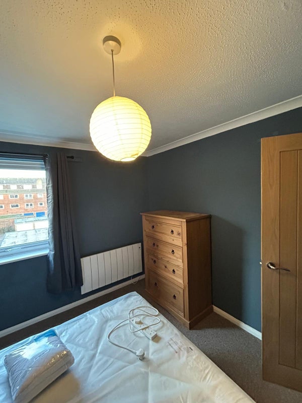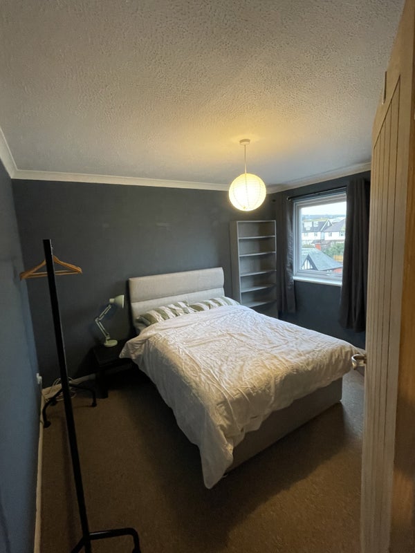 The room has a double divan bed and mattress, a bedside table, a bookcase, a large clothes rail and a chest of drawers. Happy to move things out if desired as I have access to a garage that can be used for storage.