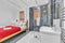 The room itself is located on the first floor and features a unique in-room, remote-control shower for added convenience. Adjacent to the room is a separate private toilet. In addition, there is a versatile extra room that can be used as a home office or cosy lounge.