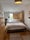 The bedroom is amazingly bright with walnut gloss wooden flooring, a king size bed with new memory foam mattress, built in storage (also new).