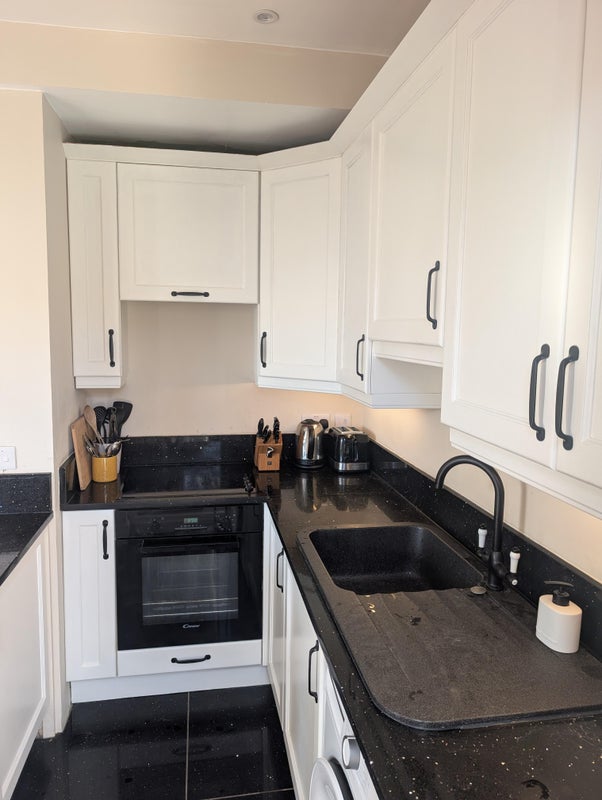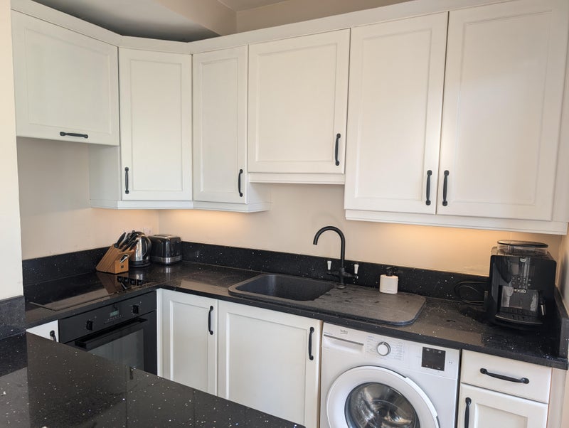 It's a beautiful 1 bedroom apartment. Super king bed. Brand new bathroom.