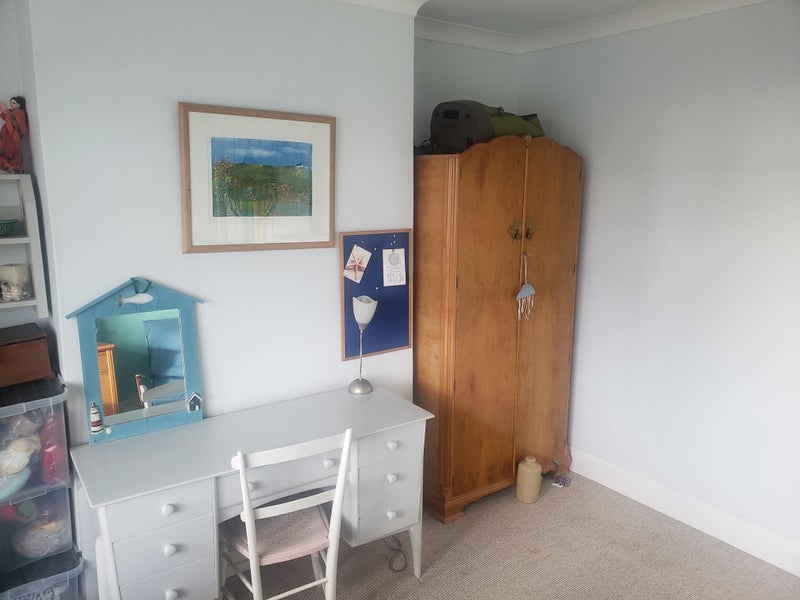 Large light and bright furnished room with a fab view over Brighton to the sea. Double size room. with single bed and desk, wardrobe. Also a decent size garden. Bathroom with shower, no bath.