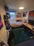 - Furnished with desk, desk chair, wardrobe, radiator, shelves, and a chest of drawers