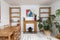 In the spacious lounge, there's a double sofa bed, two bespoke timber shelving units and a dining table and chairs.