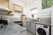 The accommodating kitchen comes equipped with a gas cooker, modern washer-dryer and fridge-freezer.