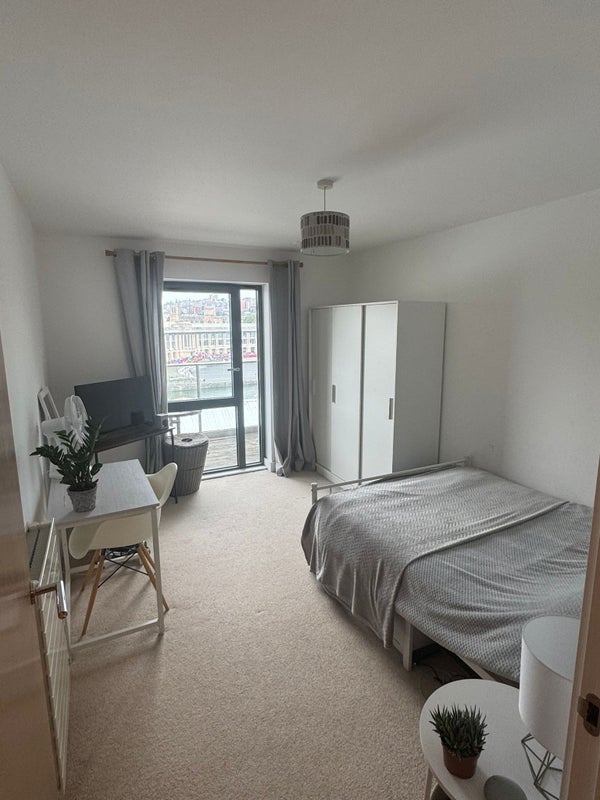 You get a 100m2 massive flat with incredible harbour views in the heart of Bristol only for 2 people. So you get 50m2 each in a way which is bigger than an average studio.