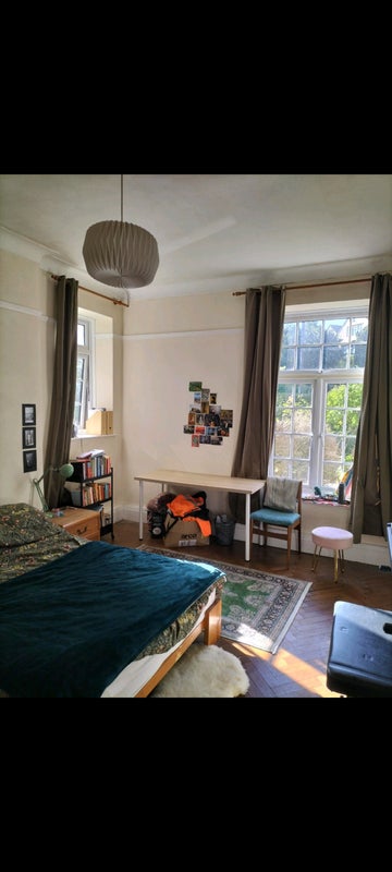 We live in a ground floor flat with large bedrooms and tall windows so it doesn't get too dark. There is a garden which is shared by all the flats (but it's only really us who use it!) and the neighbours are all friendly. It is completely unfurnished but thanks to a love for Freecycle we have it well equipped and reshuffle things every once in a while to keep it fresh. We may have some furniture bits for your room if you need:) The kitchen is on the small side but it's never a real issue as there is enough cupboard space. We have a good relationship with our landlady and she allows us lots of freedom with the flat. Ellie's lived here for nearly 2 years and Adams lived here for just under 1 year. We both work hybrid jobs so mostly work in the office / on site, but occasionally will WFH. We like sharing meals but also do lots of batch prep for our own lunches. Adam's veggie and Ellie eats anything. We shower at random times and there's never normally a que for the bathroom. Toilet & shower are separate rooms so that reduces bathroom congestion.
