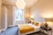The decor is tastefully done with fashionable light shades of grey and impressive lighting.