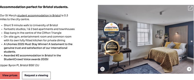 Due to a conflict between my personal plans and the contract I previously signed with the apartment, I am now subletting a student apartment at St Mary's. The room type is a Premium Studio, with check-in on 5th September 2026. The tenancy length is 51 weeks. The price is calculated according to the official website rate, currently £448 per week. The room number is C2.05. The apartment management requires tenants to be at least 18 years old and be a student enrolled at a nearby university. I am willing to pay an additional £250 towards the deposit as an incentive for the sublet.