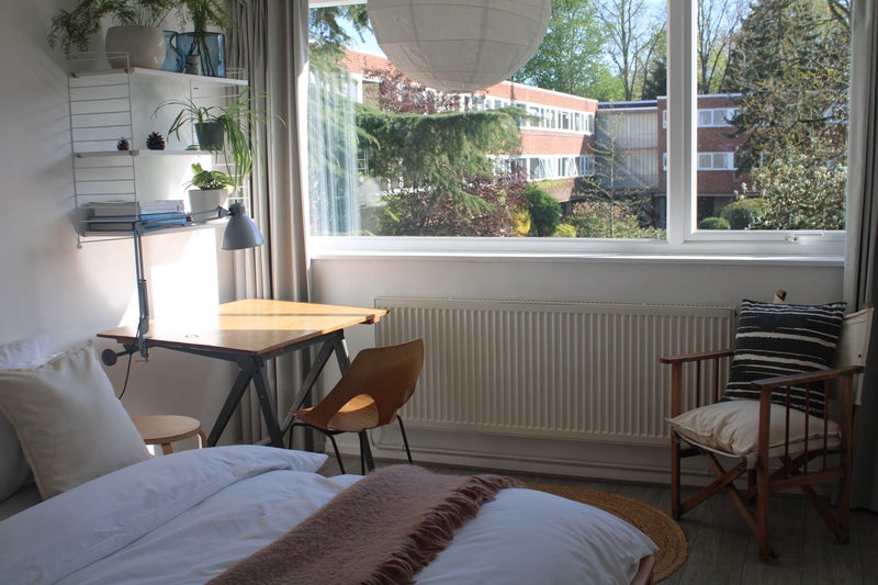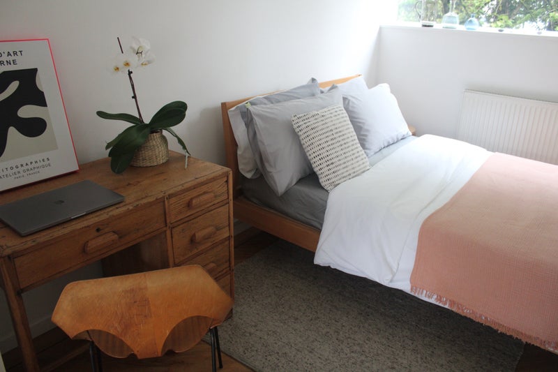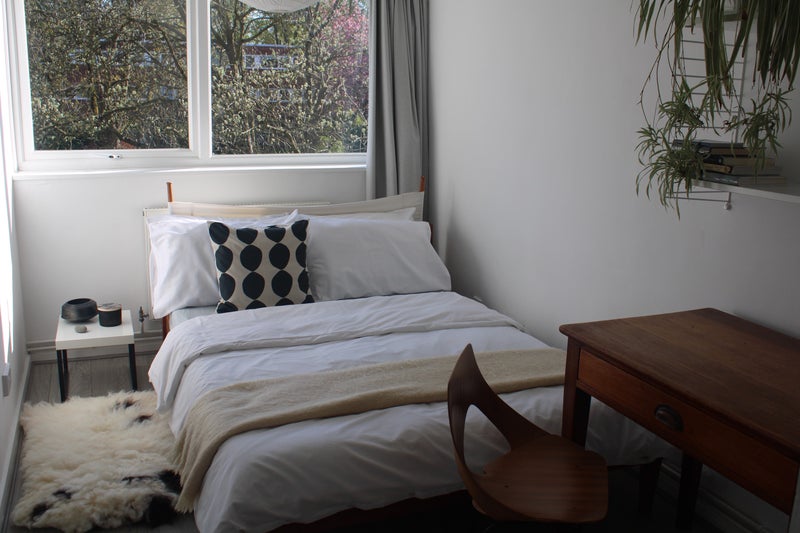 * Each room has Habitat or Muji double bed, a desk, lamp, side table, String shelves and storage.