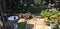 Small atrium and back garden both with seating areas.