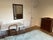 Room is furnished with double bed, desk and chair, chest of drawers and bookshelf, as well as large built in wardrobe and another built in cupboard.
