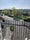 A gorgeous decked/gravel/paved garden with garden furniture including 2 sun loungers and a small shed. And firepit