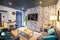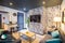 * Living room with comfy sofas and 50" smart TV