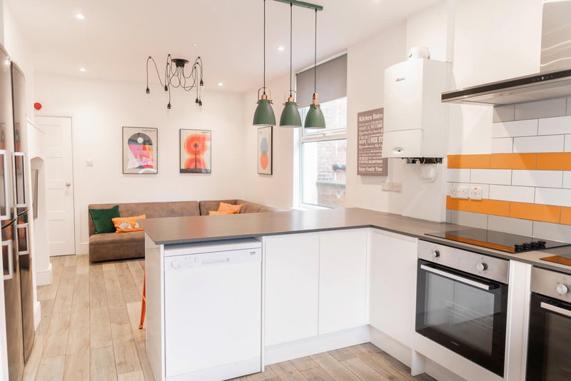 A lovely 10 bed house close to both the main Chester university campus and Kingsway campus with parking to the rear. In this accommodation there is a large kitchen with 2 hobs, 2 ovens, a double sink and 2 large fridge freezers. Joining the kitchen is an open planning living area, a perfect space for pre-drinks with a breakfast bar facing the kitchen area. There is a large corner sofa and tv in this area for when you need to relax in front of your best TV series.