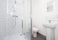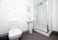 A stylish, modern shower room with a large shower and shower head, wash basin and toilet. Your shower room also comes with a heated, chrome towel rail.