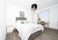 Wind down and enjoy a perfect night's sleep. Your bedroom comes with brand-new contemporary furnishings, featuring a double bed, side table, wardrobe with draws, desk and a chair.