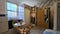 A small dining table with chairs provides a convenient space for meals or work.