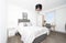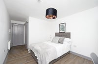 Wind down and enjoy a perfect night's sleep. Your bedroom comes with brand-new contemporary furnishings, featuring a double bed, side table, wardrobe with draws, desk and a chair.
