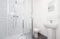 A stylish, modern shower room with a large shower and shower head, wash basin and toilet. Your shower room also comes with a heated, chrome towel rail.