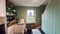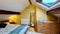 The converted loft has double bed, open wardrobe, chest of drawers, shelves and 2 bedside tables.