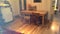 Lounge/dining room with small sofa and dining table. The kitchen is equipped with washer/drier, dish washer and electric oven and gas hob. Fridge freezer and extra fridge.