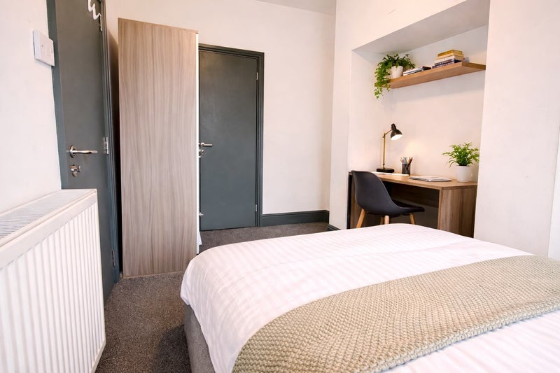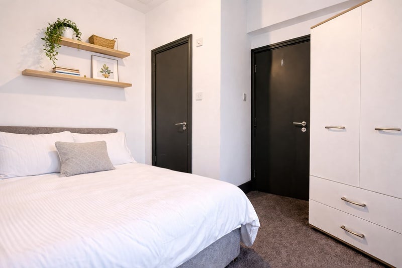 • Fully furnished with double bed, wardrobe, desk, chair, chest of drawers & bedside table