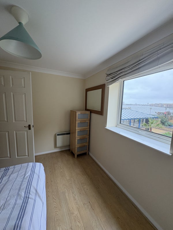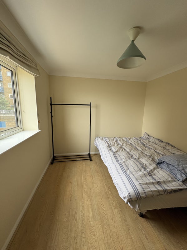 Bright riverside room available asap in a lovely 2-bed apartment in Limehouse. I’ve lived here for 11 years and it’s the nicest flat I’ve had — very peaceful, with beautiful light and views directly onto the river.