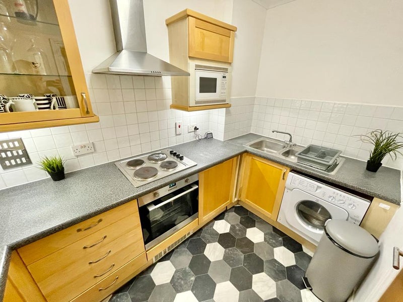 • Fully equipped kitchen with washing machine, dishwasher, microwave, utensils, and more