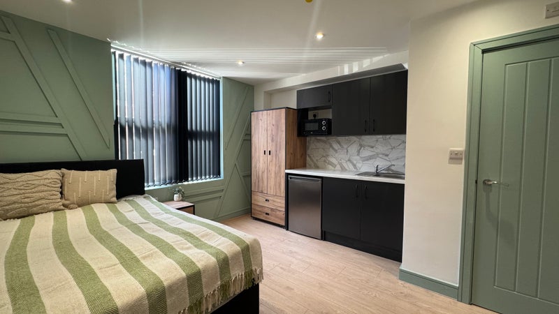 The property contains a STYLISH communal kitchen fitted with an ARRAY of MODERN wall and base units as well as Integrated oven and Hob, Washing Machine and Fridge Freezer.