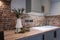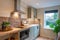 Breakfast bar seating and comfy sofa.