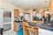 Kitchen with plenty of storage including washer dryer and fridge/freezer. Separate living room with sofas and TV.