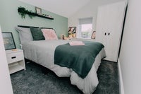 Fully equipped shared kitchen with oven/hob, American-style fridge-freezer, DISHWASHER, microwave, Dolce Gusto coffee maker, WASHING MACHINE, SEPARATE TUMBLE DRYER, Smart TV and breakfast bar with stools. The kitchen leads to the back garden which has pub style table/benches for you to enjoy and socialise with others.