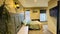 1. Integrated kitchen with 2 cabinets per person and lots of common space and a breakfast peninsula with feature lighting