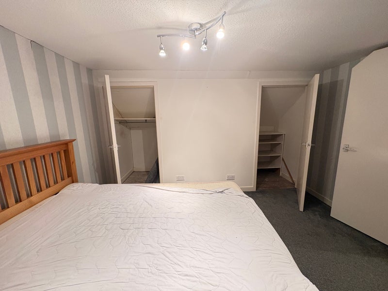 Double bedroom with inbuilt storage spaces can be used as wardrobes.