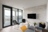 1 double room available - nestled within a purpose built riverside and green parkside neighbourhood, this light filled dual aspect new build penthouse offers 2 spacious double beds and a fully appointed bathroom/shower with very high quality furnishings included. Being on the 13th and highest floor, you will have unbridled views of the river Thames and the City. An additional mega 312sqft all weather covered terrace is solely yours to use for year round enjoyment. Direct river views can also be enjoyed from within and outside the apartment.