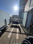 We're looking for a new flatmate to replace our friend who is moving in with his girlfriend. The room is a large double bed (furnished) en-suite, bright room. Large kitchen/dinning room/sitting room setup + large roof terrace (we're on top floor of building, so best terrace/balcony in the building! Great in summer with sun through most of the day)