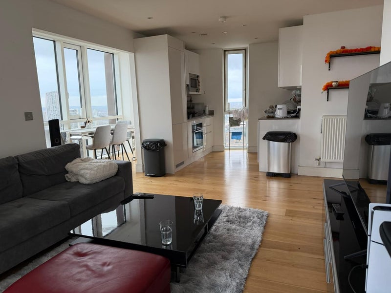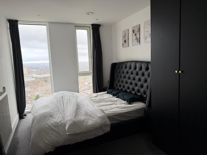 Offering sublet : a large bright master bedroom room with private main bathroom in a 32 floor, 2b2b apartment overlooking the Queen Elizabeth Olympic park near Stratford.
