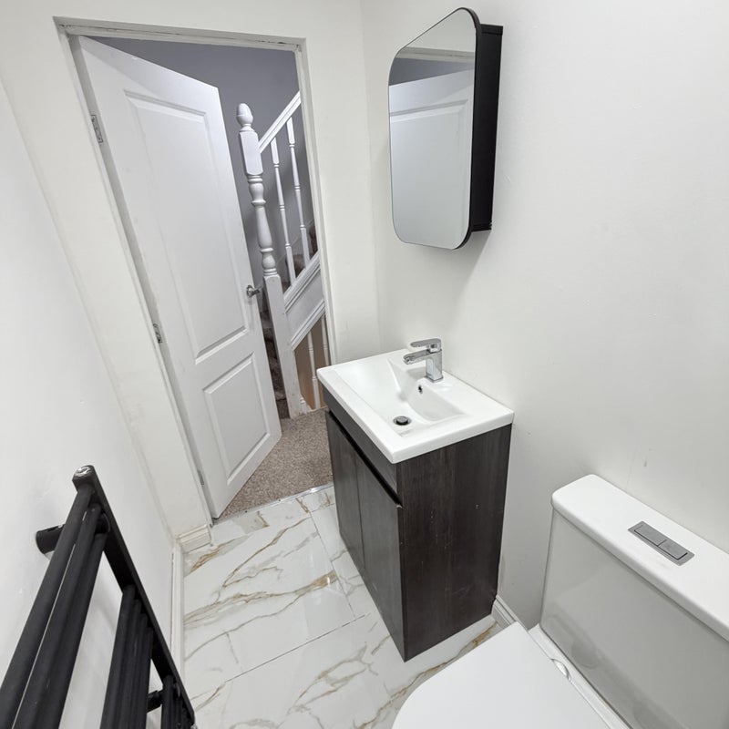 - Newly decorated bedroom with new bed, mattress, wardrobe, desk and chair in a 2 bedroom flat.