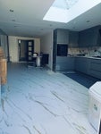 Dining Area/Living Area has been designed to make your living space as comfortable & spacious as possible giving you lots of natural light from the 2 skylight windows and fully glazed garden French doors fitted with vertical blinds Leading to garden area . Tiled marble effect flooring throughout house .