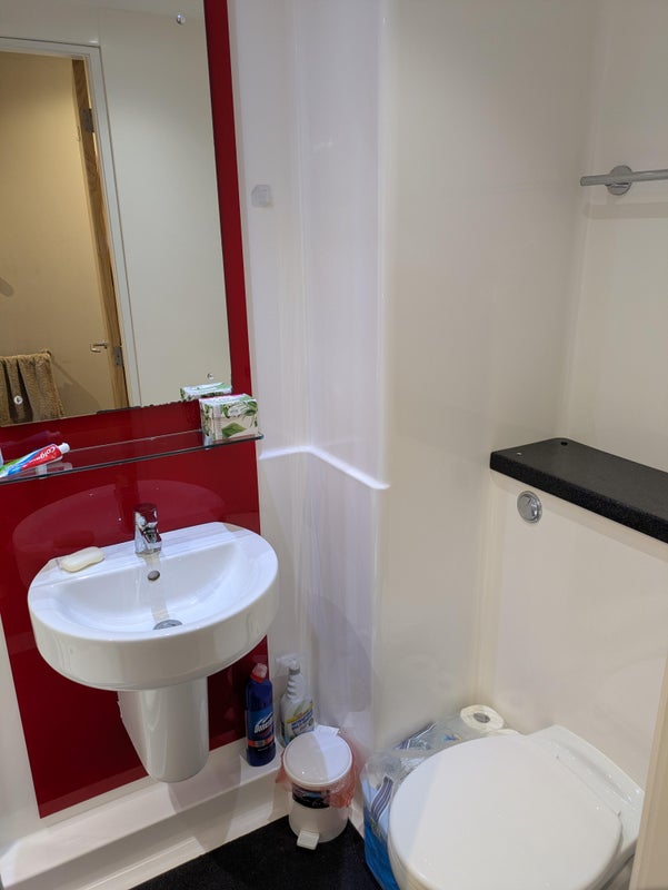 - Pantry (next door to room) with fridge, toaster, microwave, kettle and storage space shared with 8 others